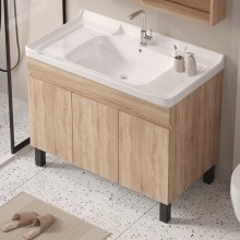 實(shí)木浴室柜組合落地式小戶型防水衛(wèi)浴柜簡約衛(wèi)生間洗漱臺盆柜組合