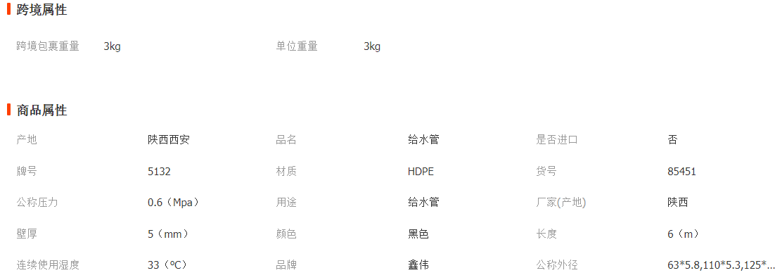鑫偉PE全新料給水管大